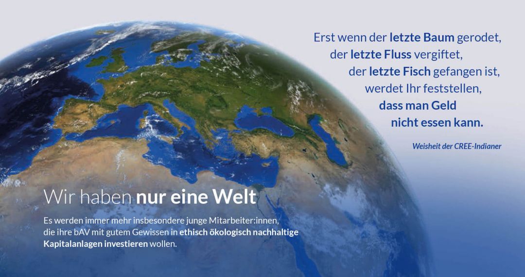 Die Indianerweisheit wurde bekannt in den 80er Jahren, nachdem die Grünen erstmals in den Bundestag kamen. Seitdem ist die Weltbevölkerung von 4,7 auf 8 Milliarden gestiegen*. Und ebenso steigt die Anzahl der insbesondere jüngeren Menschen, denen Ethik, Ökologie und Nachhaltigkeit in der Kapitalanlage wichtig sind, vielleicht auch unter Ihren Mitarbeitern.